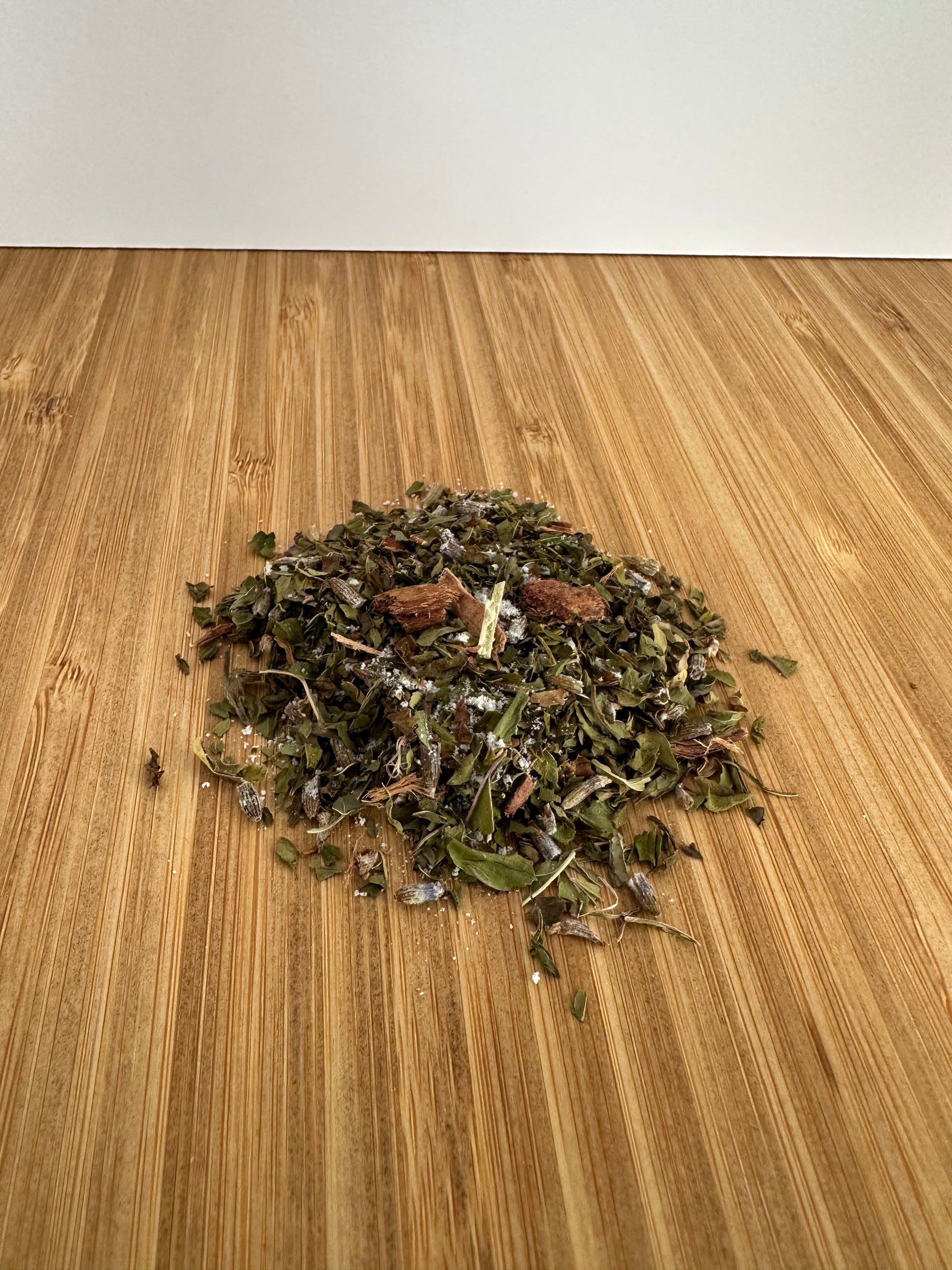 Cool Waters ingredients: Peppermint leaf, Spearmint leaf, Willow bark, Lavender flowers, & Honey powder